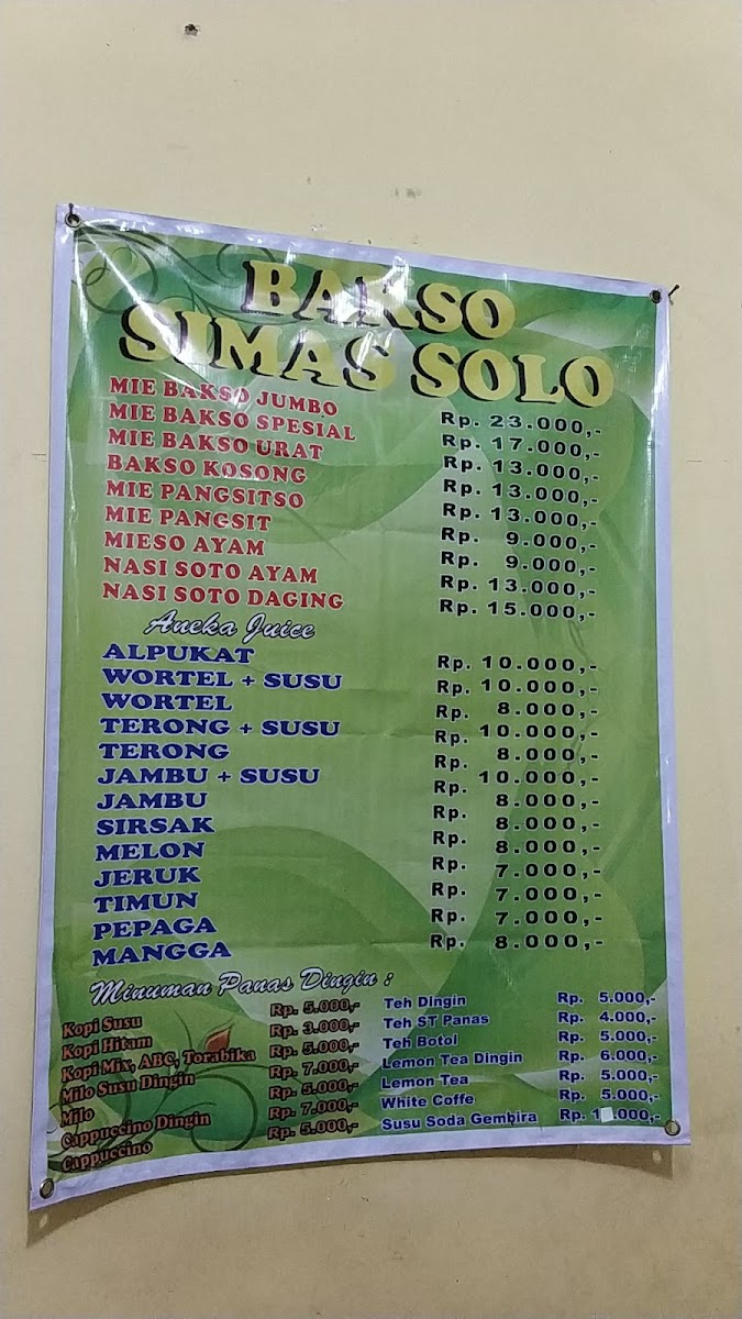 For those looking to explore the noodle offerings, Simas Solo presents two delightful options: mie kuning and mie putih (bihun). Each noodle type complements the richness of the bakso beautifully, ensuring that your meal is not only filling but also satisfying across all dimensions of flavor—savory, subtle, and unbelievably delicious. And let's not forget the refreshing range of juices available, perfect for washing down your meal. While one customer noted that the juices could be a bit watered down, the overall value of the experience keeps diners returning month after month.